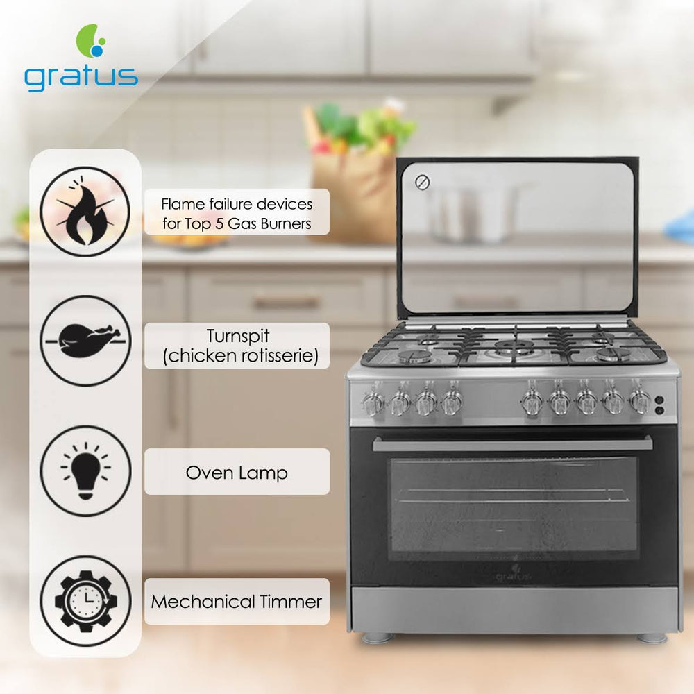 90×60 cm Free-Standing Gas Cooker | 5 Euro-Style Burners • Dual Turbo Fan Oven • Self-Cleaning • Cast Iron Grates • Made in Turkey • Model FCR905KTSS1